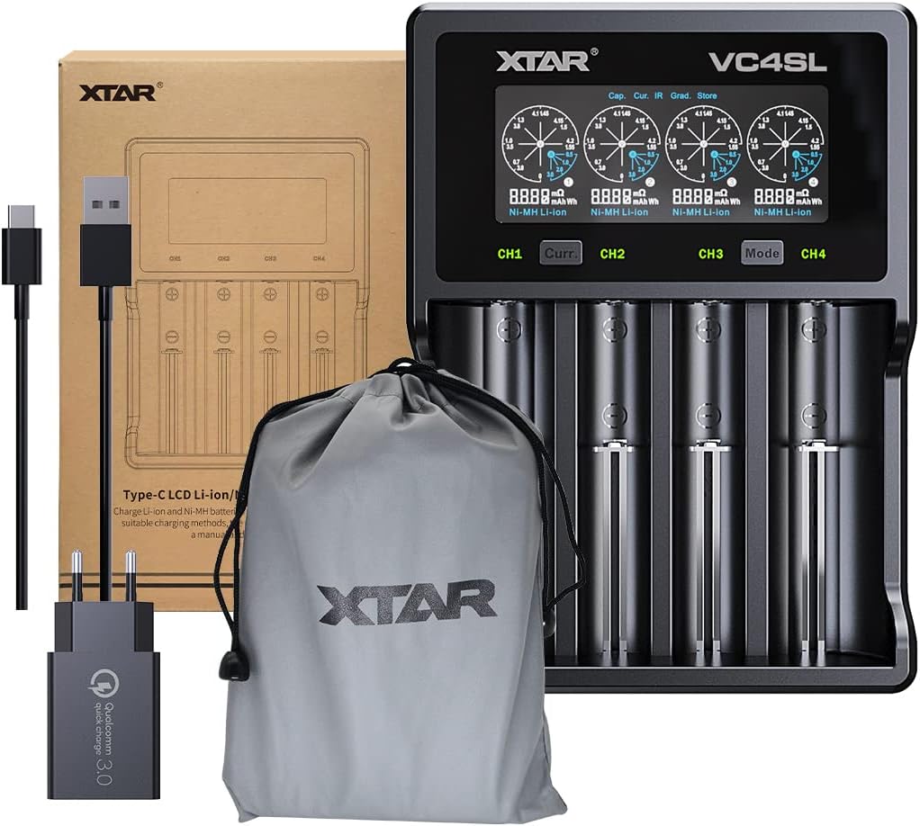 Carga rápida QC3. 0Max 3A para ranura única. Admite el protocolo QC3. 0, conecta el adaptador QC3. 0, coloca una batería de iones de litio en VC4SL, el cargador detecta automáticamente