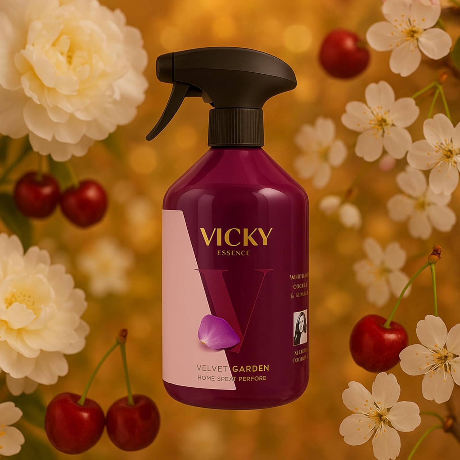Velvet Garden invites a romantic and immersive experience, with a scent that gently caresses the senses. The delicacy of white flowers and cherries meets a creamy heart and a background of heliotrope and vanilla, creating a soft and sensual wake. A spray that turns any room into an intimate and cozy corner.